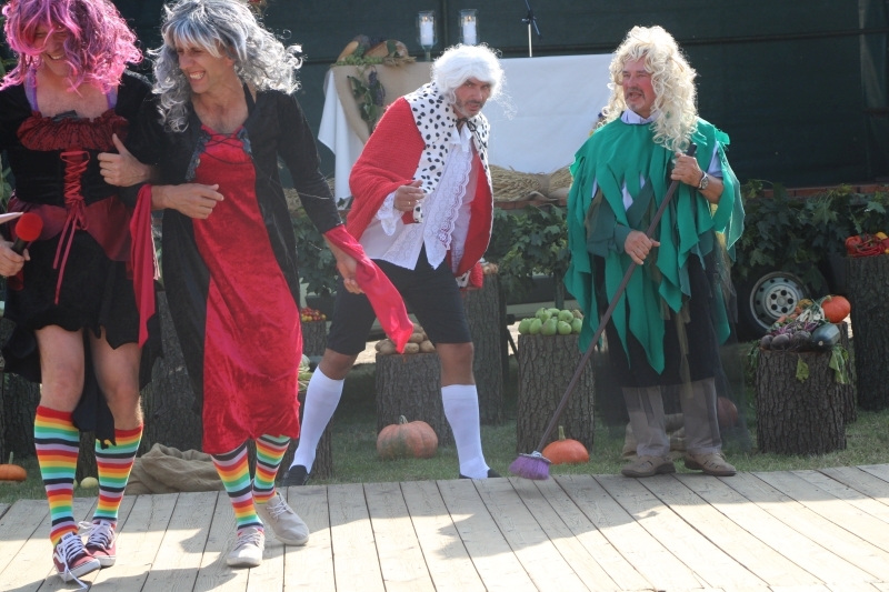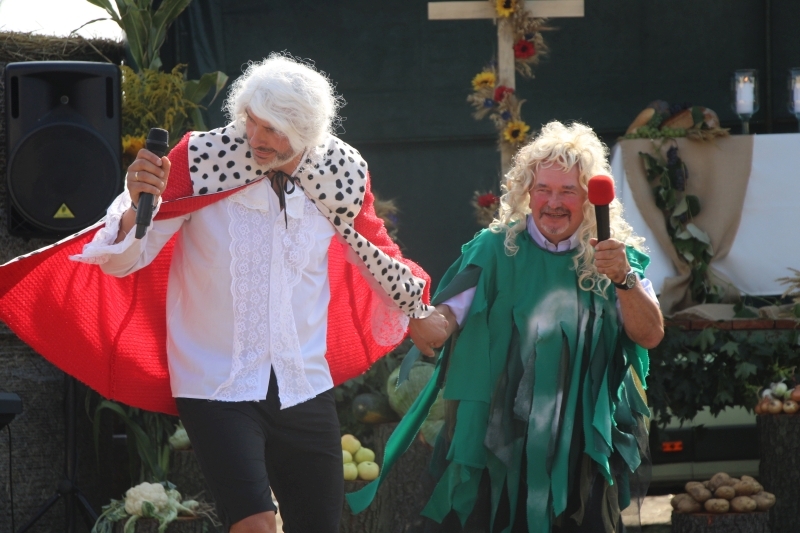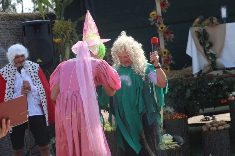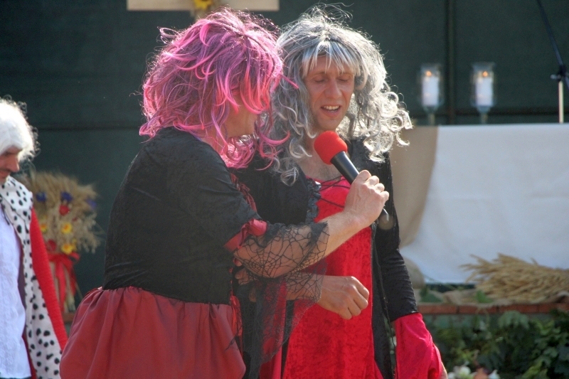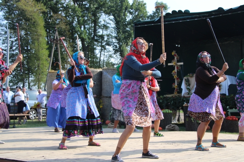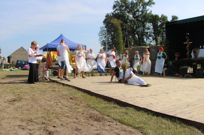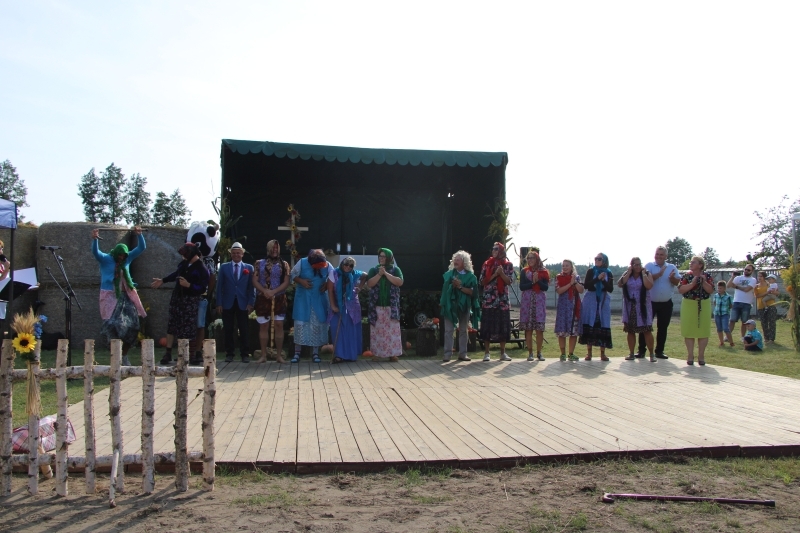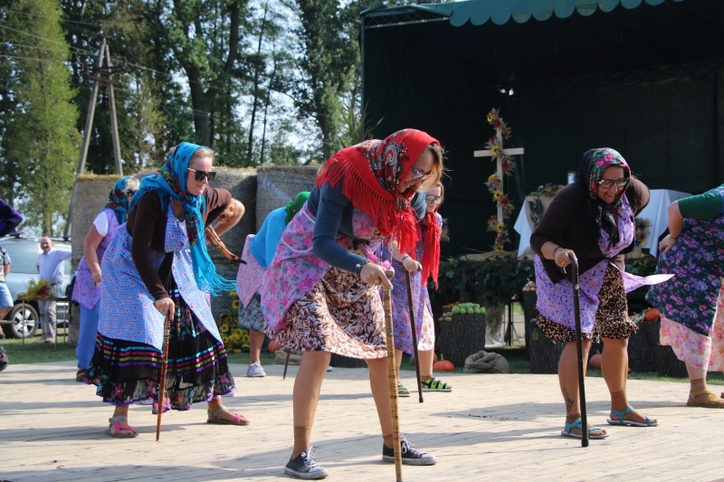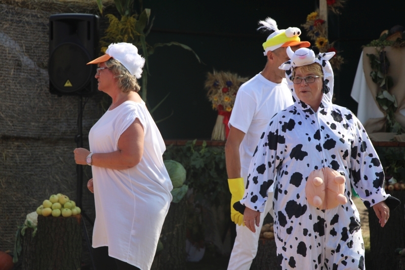 Tuż po mszy przyszedł czas na część artystyczną z dużą ilością śpiewu i tańca. Bez wątpienia jednak największe „show” zrobiła specjalnie utworzona na tę okazję grupa teatralno-kabaretowa, która postanowiła urozmaicić dożynki prezentując humorystyczne wersje wierszy „Na straganie” Jana Brzechwy oraz „Dlaczego ciele ogonem miele” Wandy Chotomskiej. Uzdolnieni aktorsko mieszkańcy wsi przedstawili ponadto swoją wizję „życia na starość”.