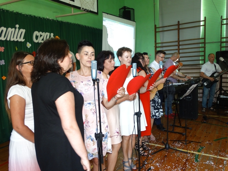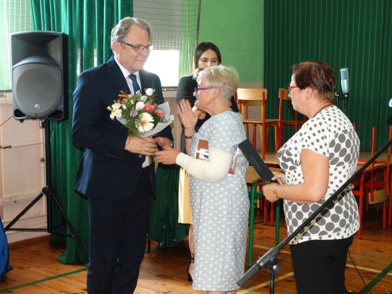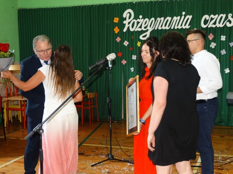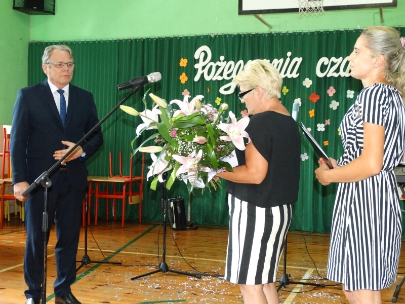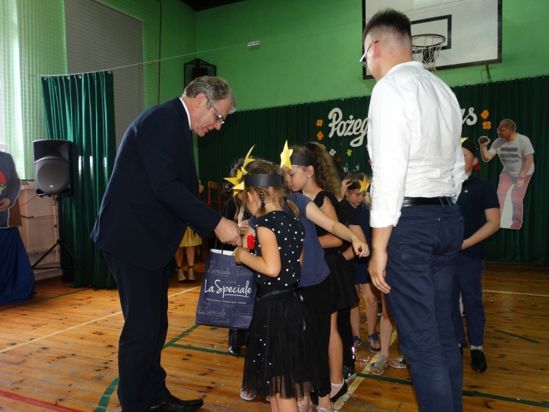 Choć pożegnania kojarzą się zazwyczaj ze smutkiem i nostalgią, to środowa uroczystość była zgoła odmienna. Specjalnie z myślą o odchodzącym dyrektorze nauczyciele i uczniowie włoszakowickiej szkoły przygotowali niezwykle barwny i bogaty program artystyczny, w trakcie którego śpiewali piosenki, recytowali wiersze, tańczyli, a nawet zaprezentowali dwie humorystyczne scenki. Nie mogło też zabraknąć podziękowań, gratulacji i życzeń składanych zasłużonemu pedagogowi przez zaproszonych gości, w tym m.in.: wójta gminy Włoszakowice Roberta Kasperczaka, przewodniczącego Rady Gminy Kazimierza Kurpisza, wiceprzewodniczącego Rady Gminy Marka Wąsowicza, radne Irenę Przezbór i Marię Rzeźniczak, dyrektora Gminnego Ośrodka Kultury Pawła Borowca, kierownik Środowiskowego Domu Samopomocy Mariolę Żołędziejewską, dyrektorów okolicznych placówek oświatowych oraz przedstawicieli rad rodziców.