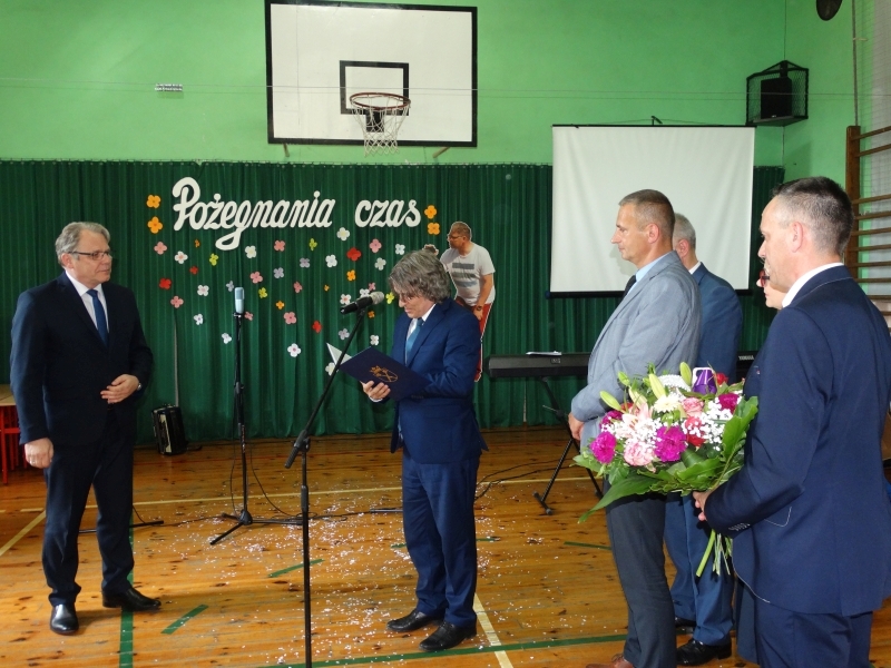 Wraz z ostatnim dzwonkiem w roku szkolnym 2018/2019 pracownicy i uczniowie Zespołu Szkół Ogólnokształcących we Włoszakowicach pożegnali długoletniego dyrektora placówki – Tadeusza Górnego. Tym samym mieszkaniec Grotnik, związany z naszą gminą od 1982 roku, po prawie 37 latach pracy w oświacie zakończył swą owocną karierę zawodową i już niedługo przejdzie na zasłużoną emeryturę.